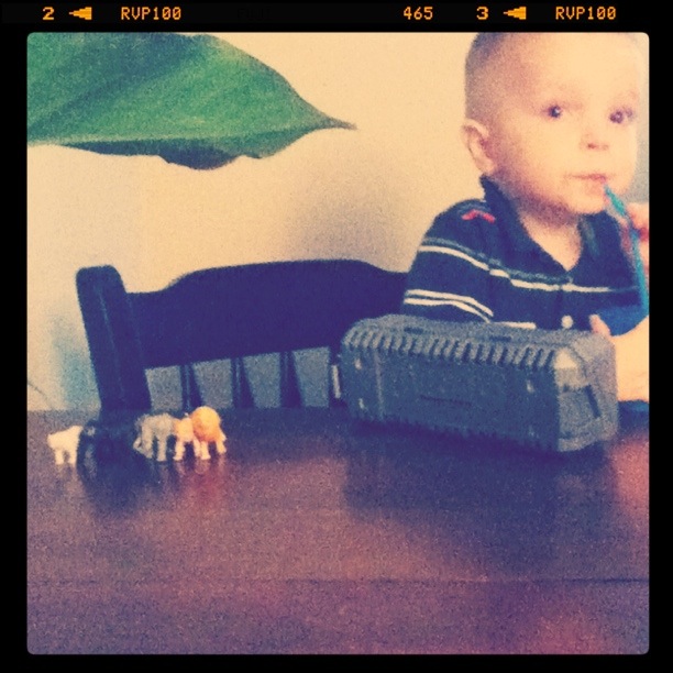At our family reunion, Trav got some zoo animals from Grandma Nygard.